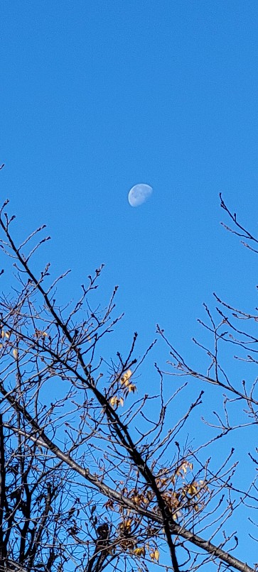 바쁜 하루 속에서도 이렇게 잠깐 멈춰서 하늘을 본 게 얼마만인지 모르겠다. 가끔은 이런 소소한 장면이 바쁜 하루를 조금 다르게 만들어주는 것 같다. 몸의 휴식이 아닌 마음의 휴식이 된다. 하늘 위 달 하나가 잠깐이나마 내 마음을 동심으로 되돌려준 시간이었다. 오늘따라 하늘이 유난히 맑고, 그 달이 더 선명하게 빛나 보였다.