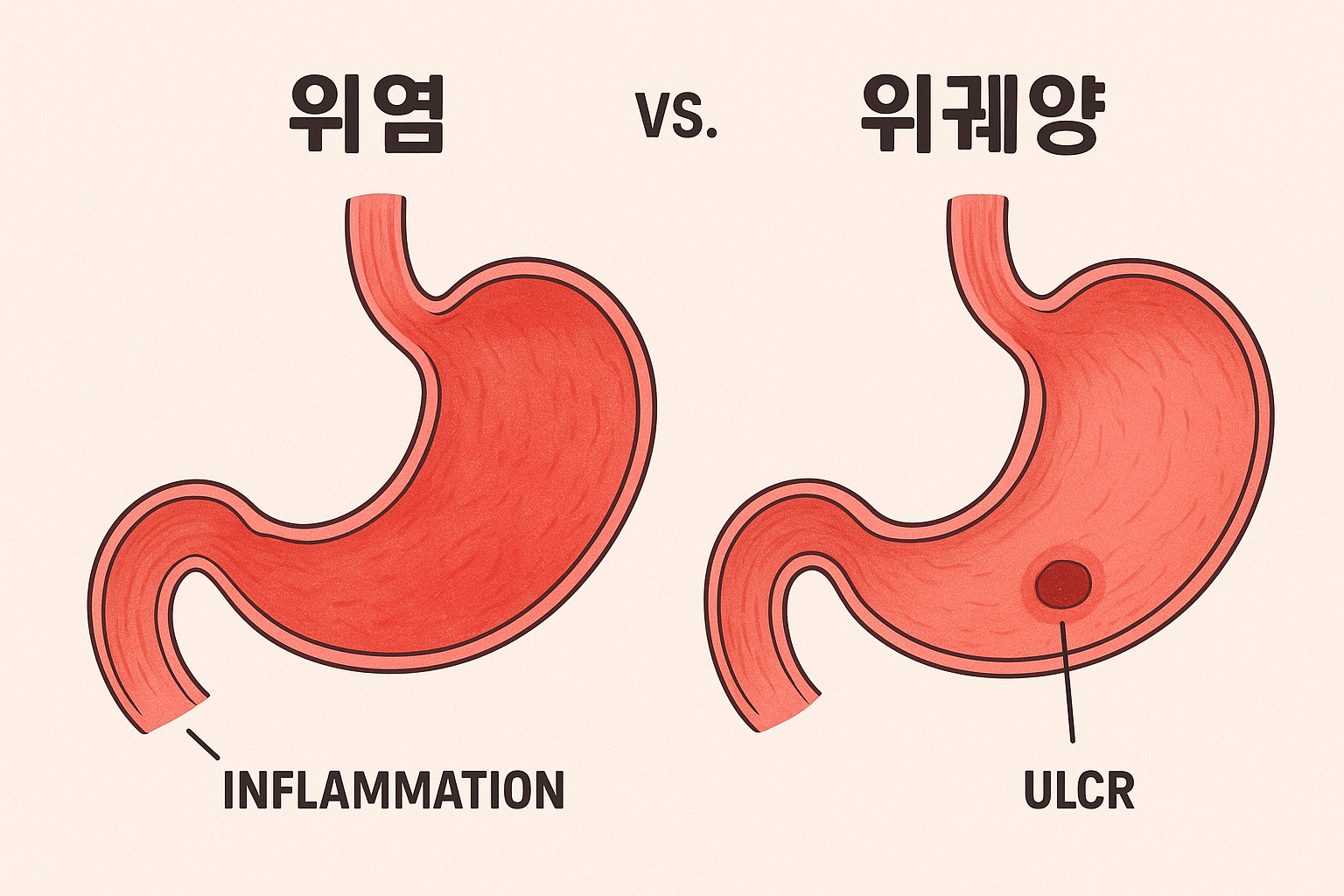 소화가 잘 안 되거나 배가 더부룩한 느낌을 받으면 누구나 한 번쯤 ‘위에 문제가 생긴 건 아닐까?’ 하는 걱정을 하게 됩니다. 위 건강은 일상 생활의 질과 직결되기 때문에, 증상을 정확히 이해하고 관리하는 것이 중요합니다. 특히 흔히 혼동되는 위염과 위궤양은 증상이 겹치면서도 원인과 위험도, 치료 방법에서 차이가 있어 구분이 필요합니다. 오늘은 위염과 위궤양의 증상을 비교하면서, 어떤 상황에서 병원을 찾아야 하는지 알아보겠습니다.